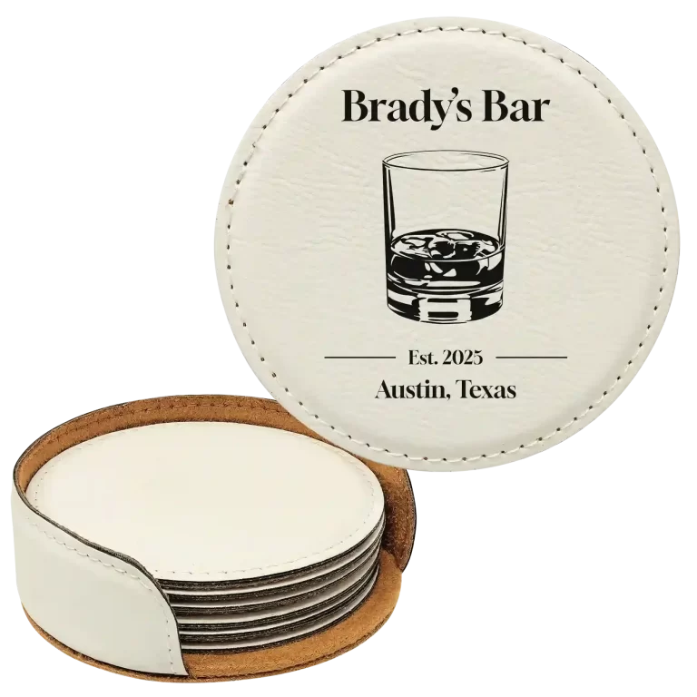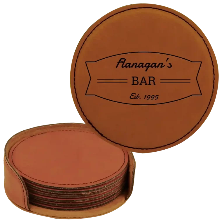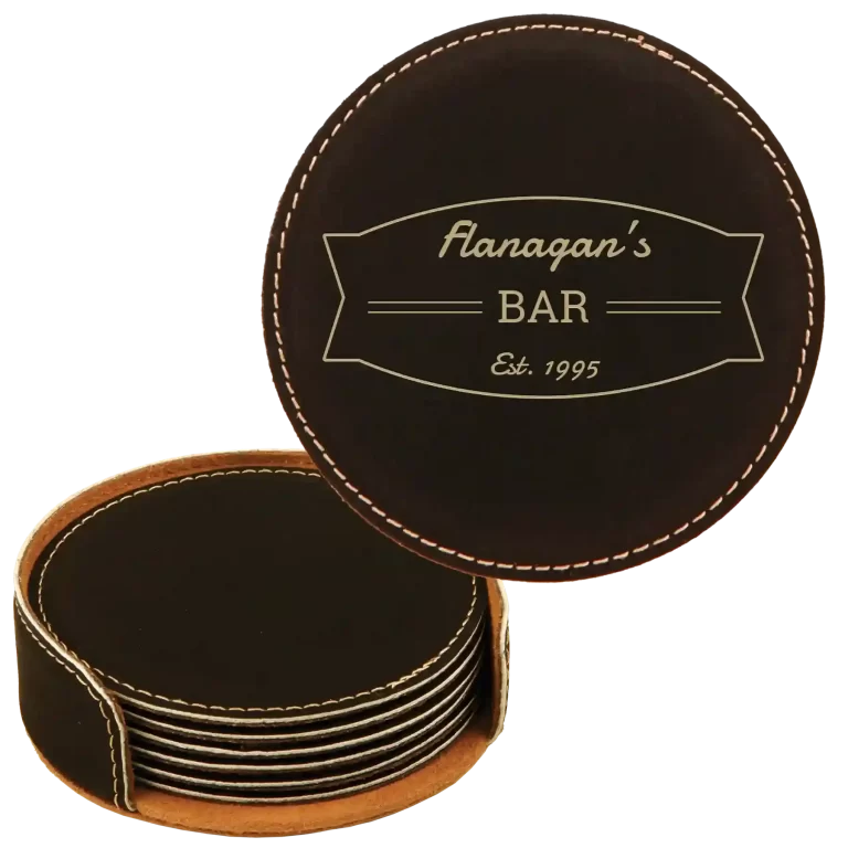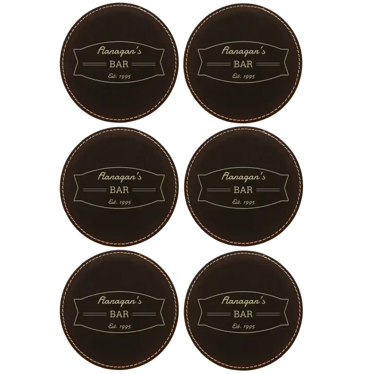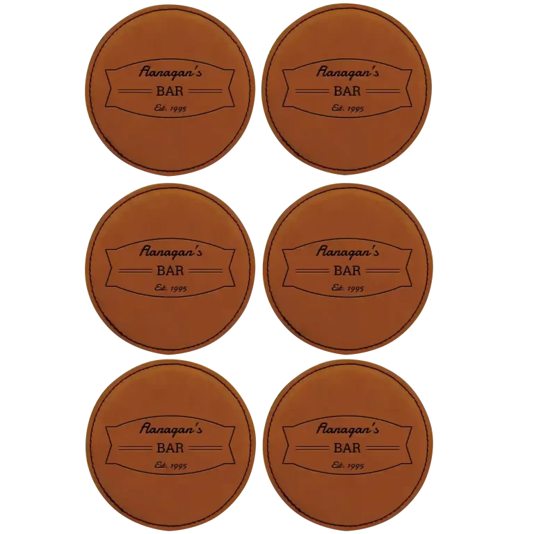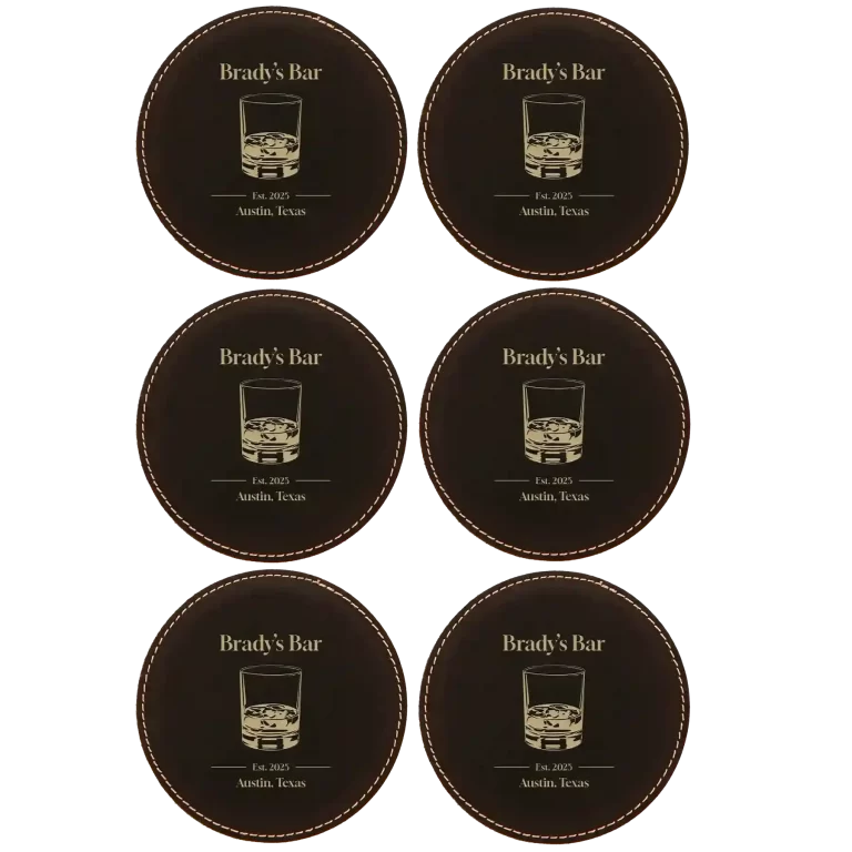 Personalized Bar Banner Round Leatherette Coasters Set of 6 – Rawhide