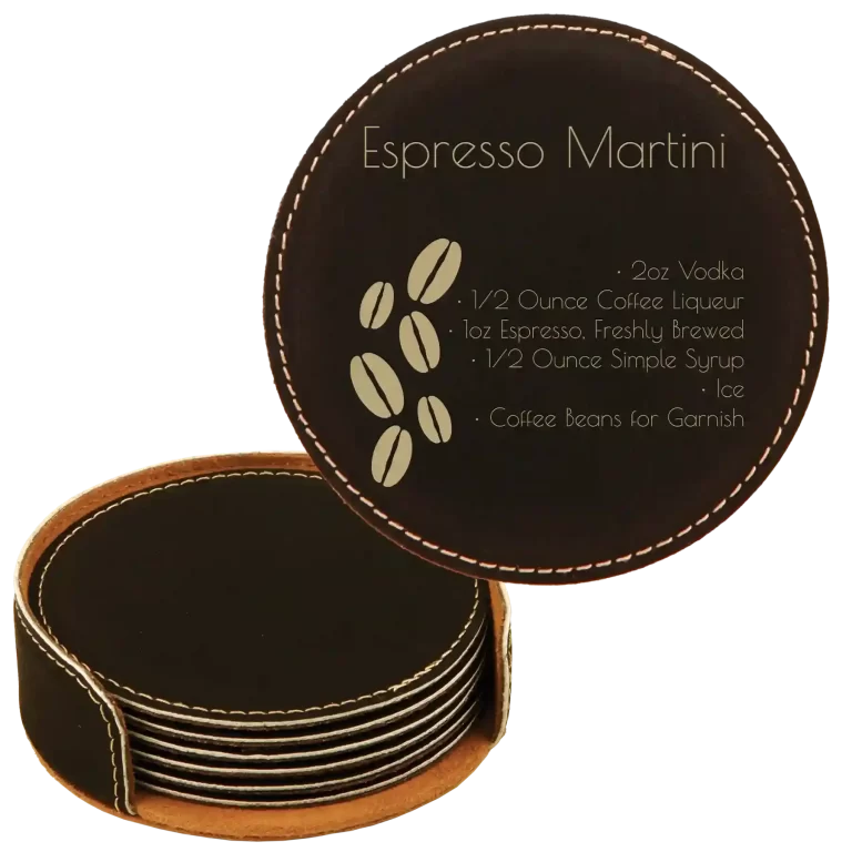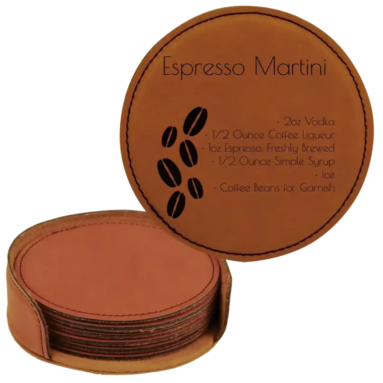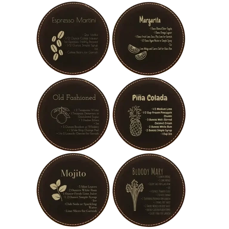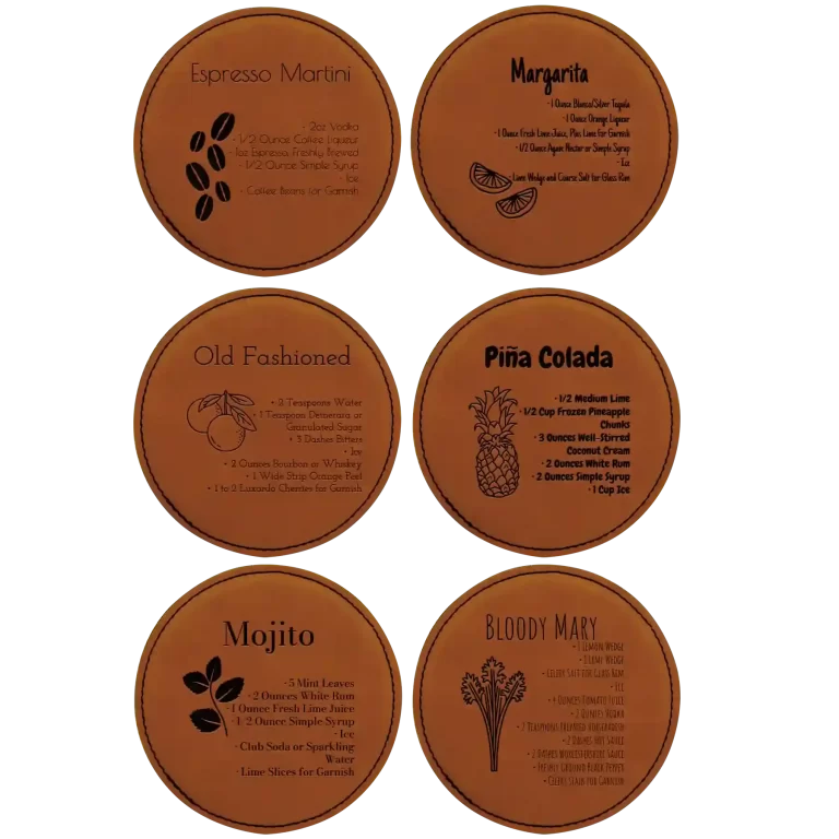 Personalized Cocktail Recipe Round Leatherette Coasters Set of 6 – Rawhide