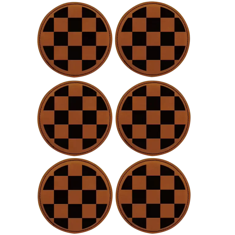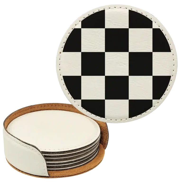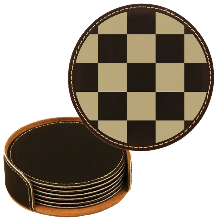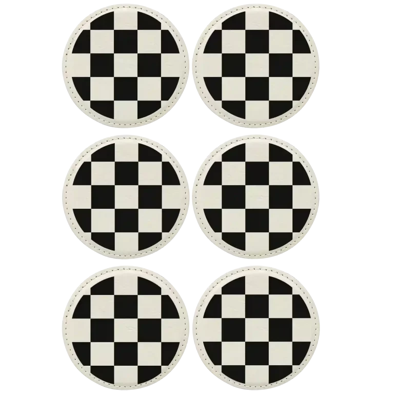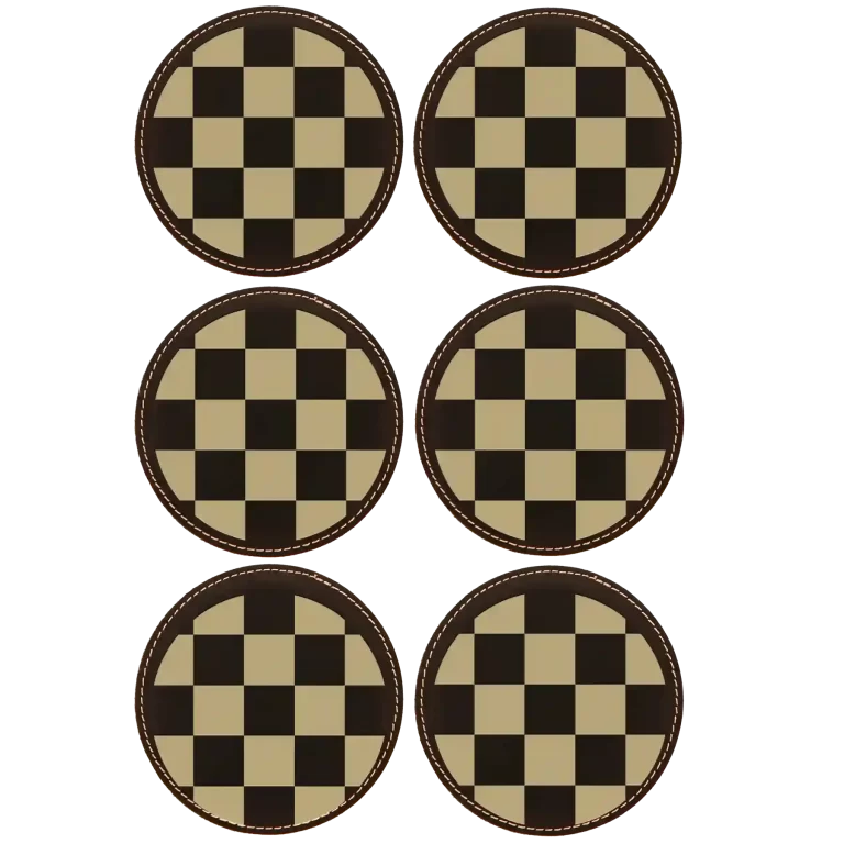 Personalized Checkered Round Leatherette Coasters Set of 6 – Rawhide