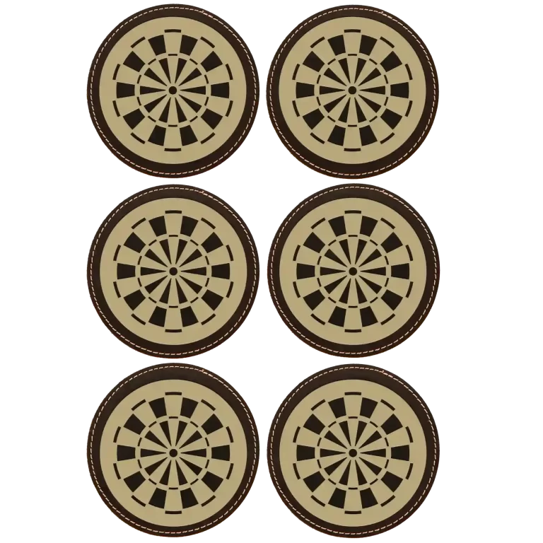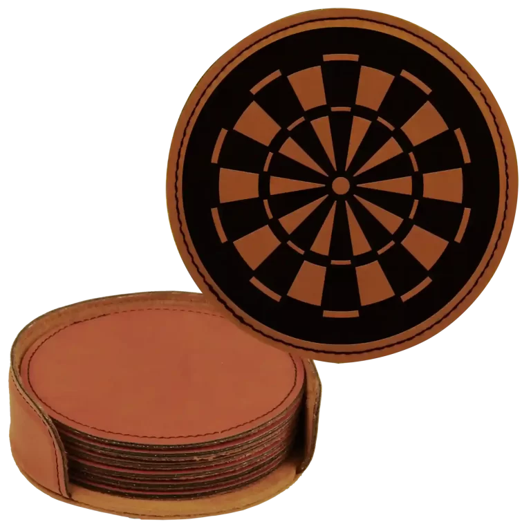 Personalized Dart Board Round Leatherette Coasters Set of 6 – Rawhide