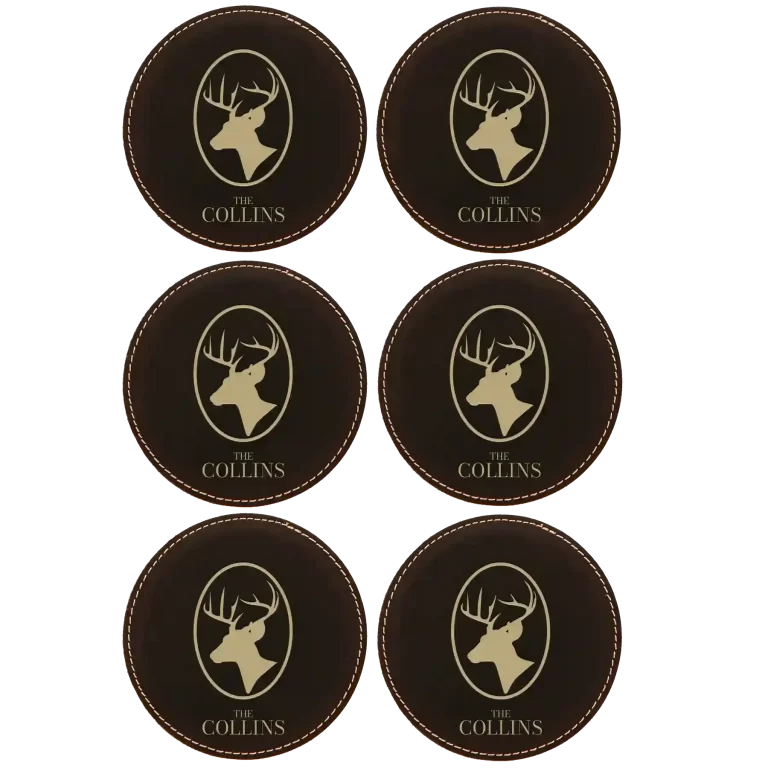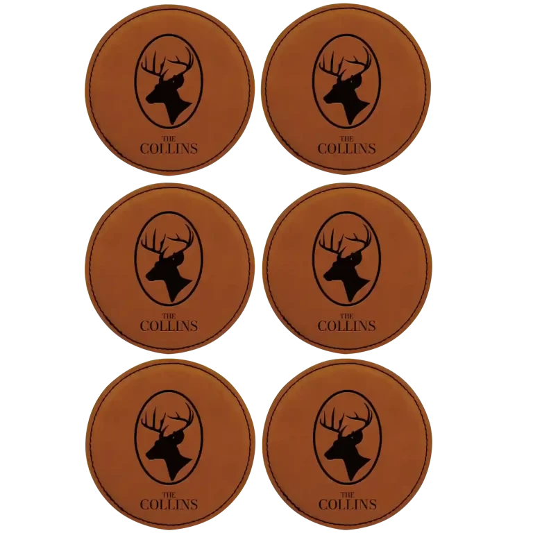 Personalized Deer Family Name Round Leatherette Coasters Set of 6 – Rawhide