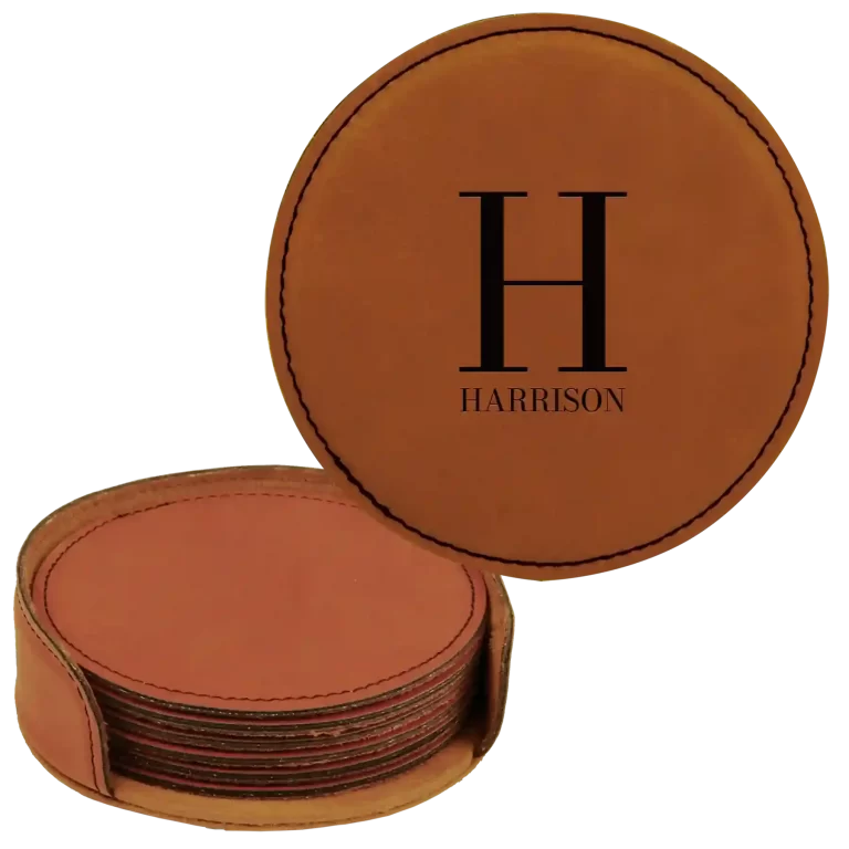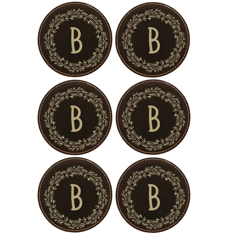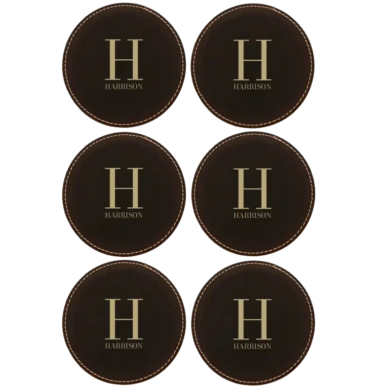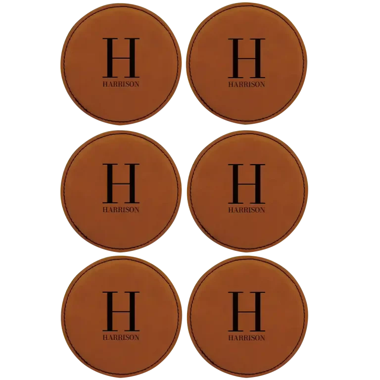 Personalized Last Name Initial Round Leatherette Coasters Set of 6 – Rawhide
