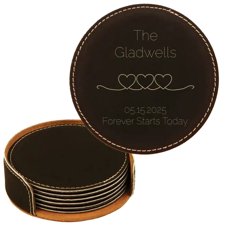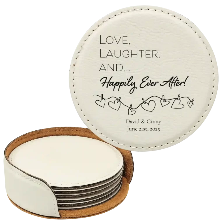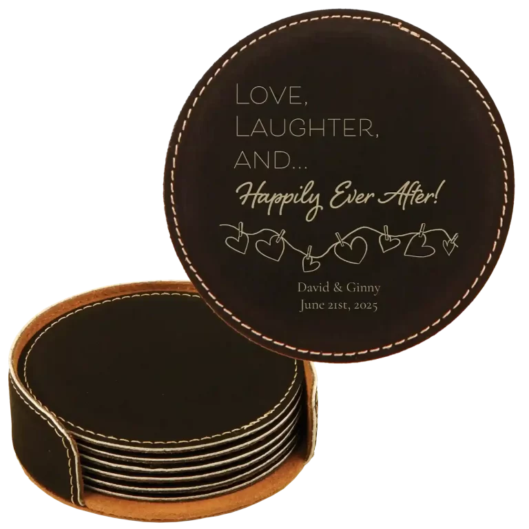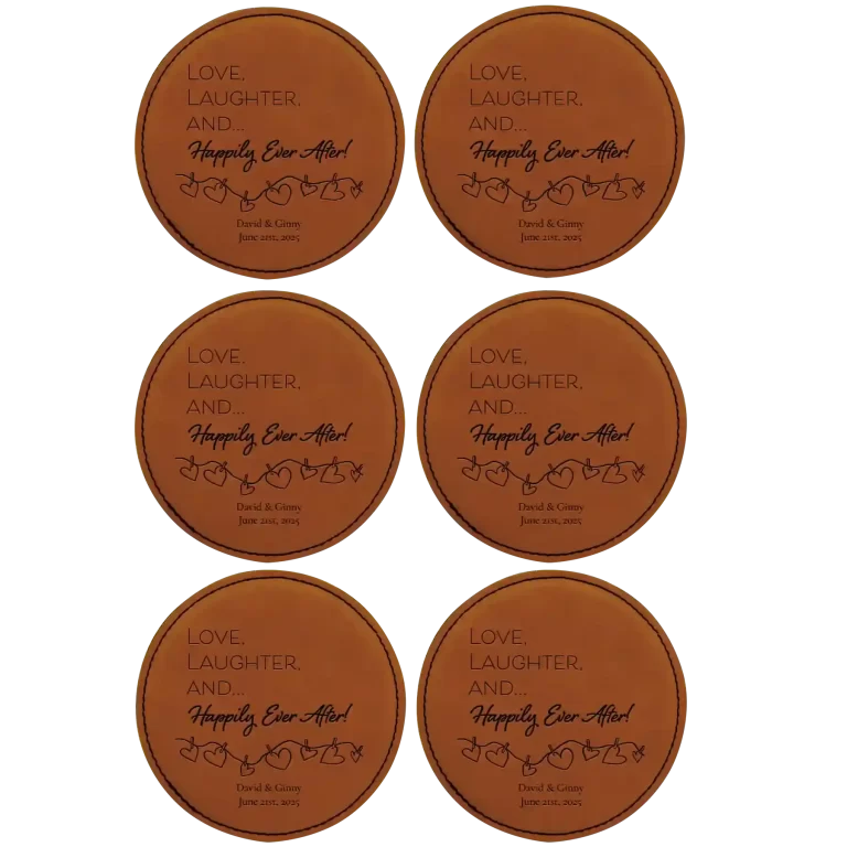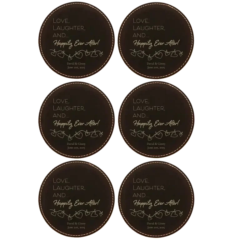 Personalized Happily Ever After Round Leatherette Coasters Set of 6 – Rawhide