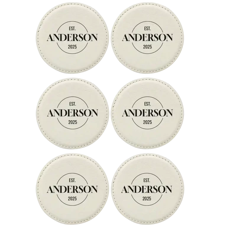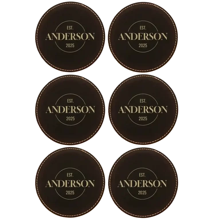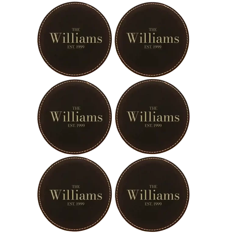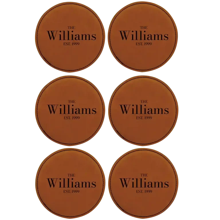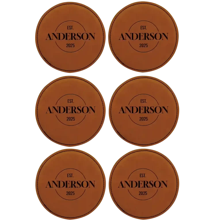 Personalized Family EST Round Leatherette Coasters Set of 6 – Rawhide