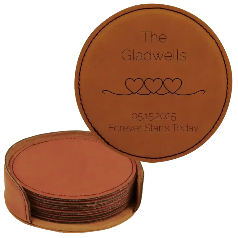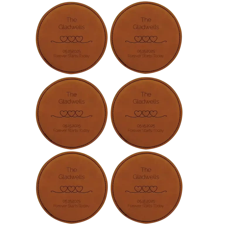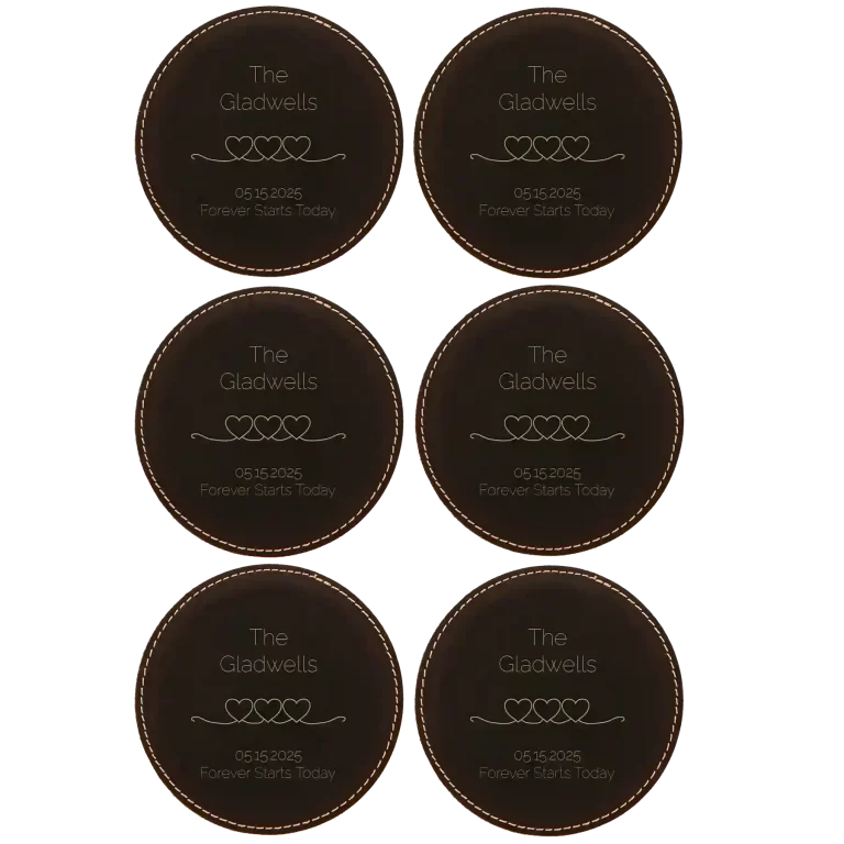 Personalized Forever Starts Round Leatherette Coasters Set of 6 – Rawhide