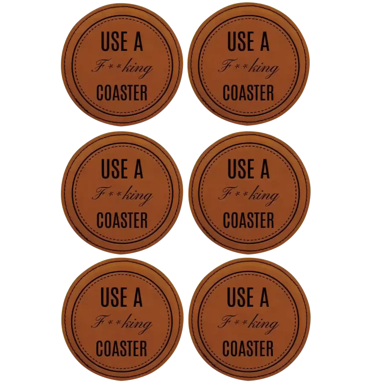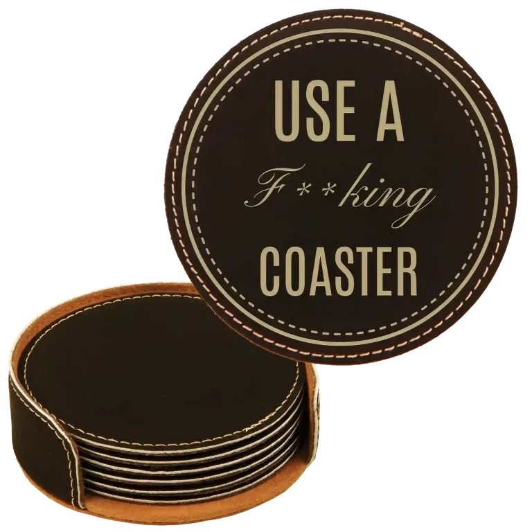 Personalized Fing Coaster Round Leatherette Coasters Set of 6 – Rawhide