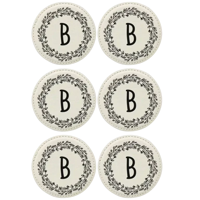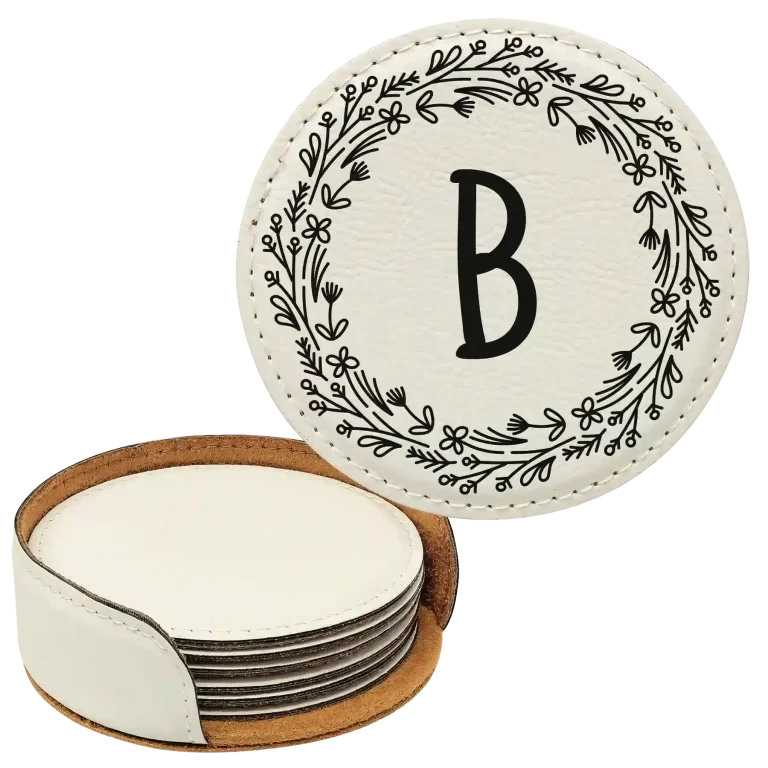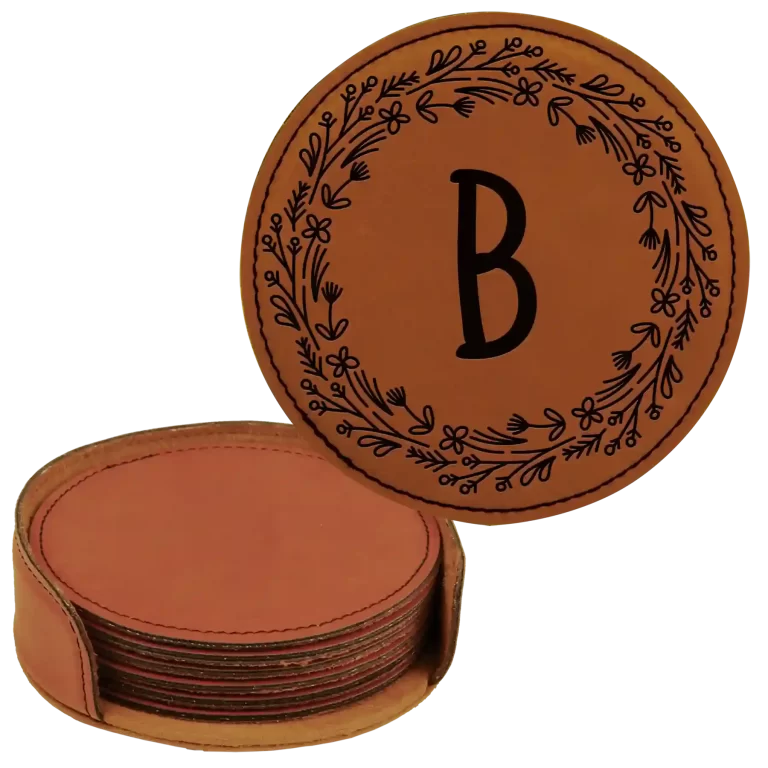 Personalized Floral Circle Round Leatherette Coasters Set of 6 – Rawhide