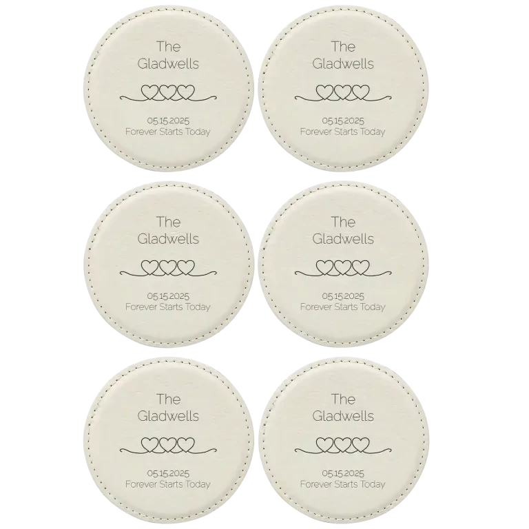 Personalized Forever Starts Round Leatherette Coasters Set of 6 – White