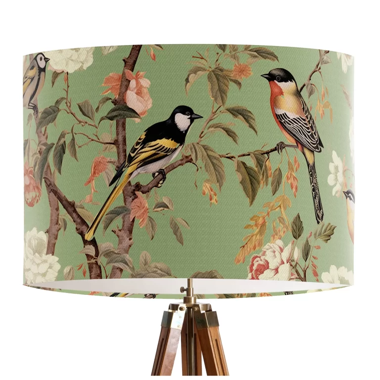 Country Home Lampshade, Garden Birds Green, Celing Pendant, Drum Shade