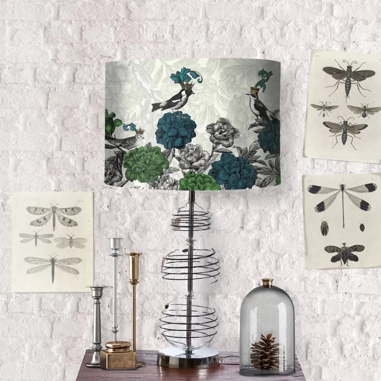 Blooming Birds, Blue and Green, Lamp shade, Drum, Pendant Lighting