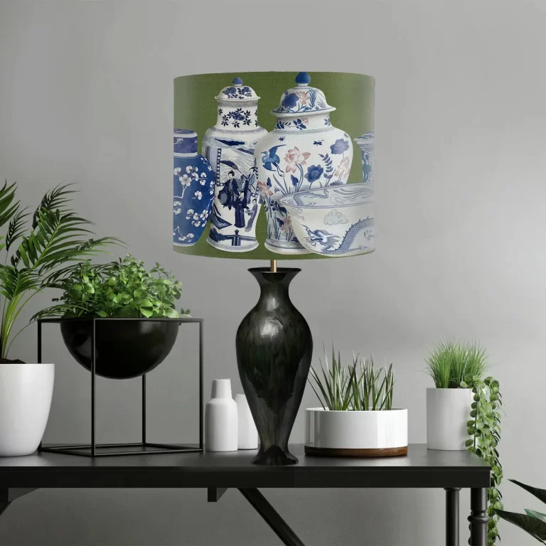 Chinoiserie vase Green, Lamp shade, Drum, Pendant Lighting