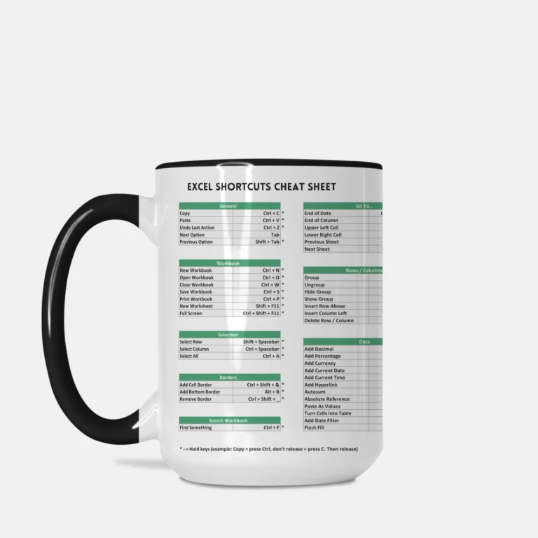 Excel Shortcuts Cheat Sheet Mug