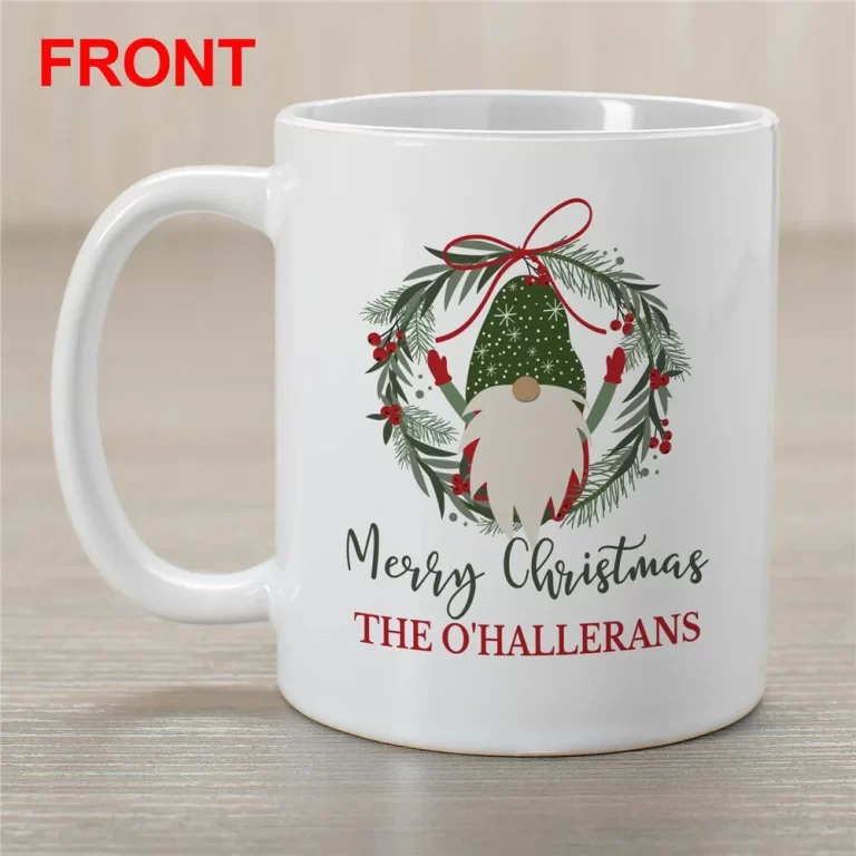 Burlap Gnome Christmas Mug – Personalized Rustic Holiday Mug