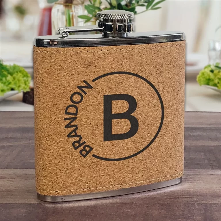 Custom Engraved Cork Flask – Groomsmen Gift with Circle Name Design