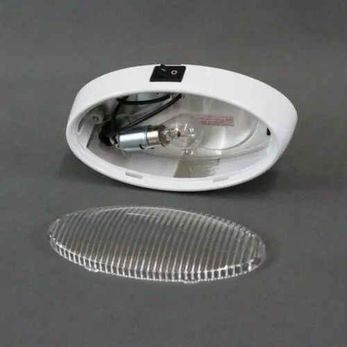 (S/O) Optronics RVPL7C Oval Porch Light w/ Switch – White/Clear