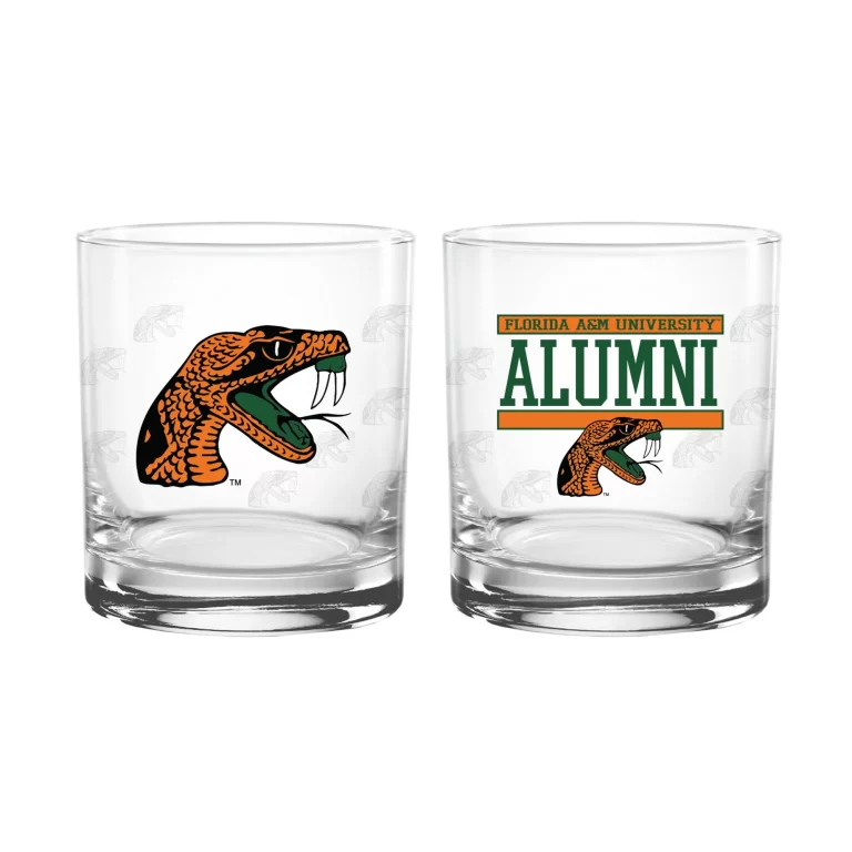 Set of 2 Florida A&M Rattlers 14oz XD Alumni Rocks Glasses