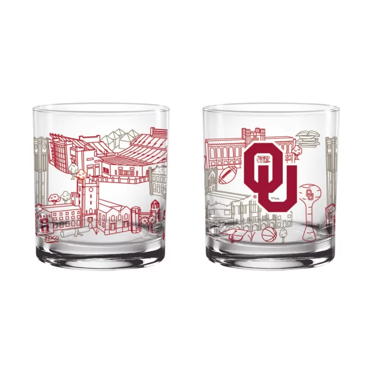Set of 2 Oklahoma Sooners Campus Line Art 14oz Rocks Glasses
