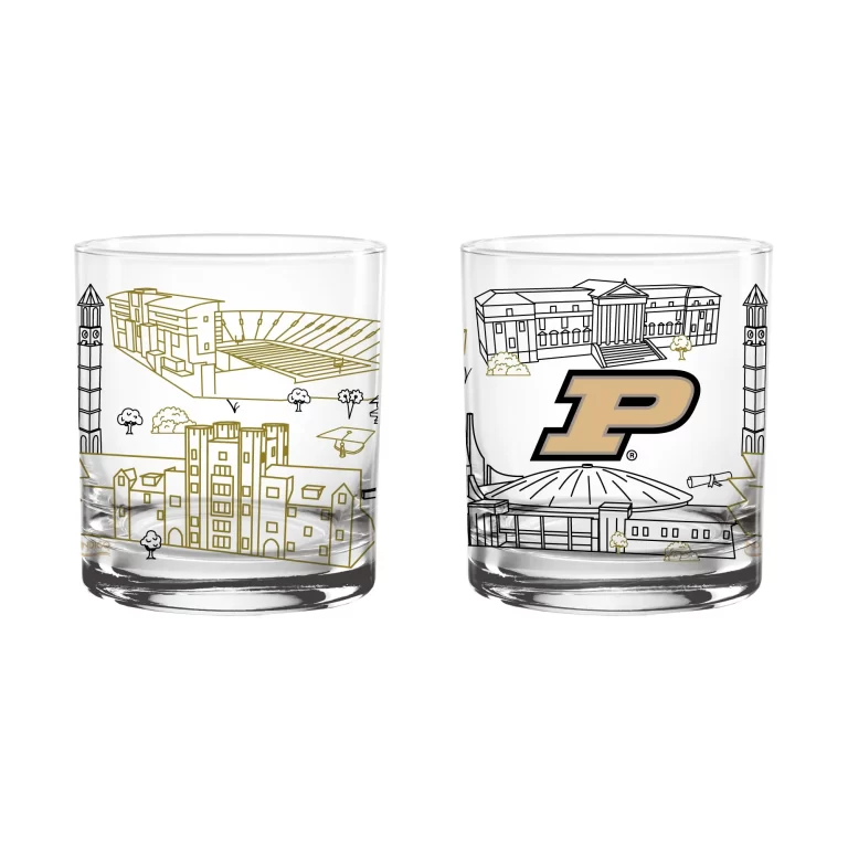 Set of 2 Purdue Boilermakers Campus Line Art 14oz Rocks Glasses