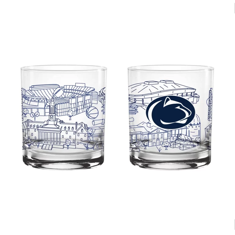 Set of 2 Penn State Nittany Lions Campus Line Art 14oz Rocks Glasses