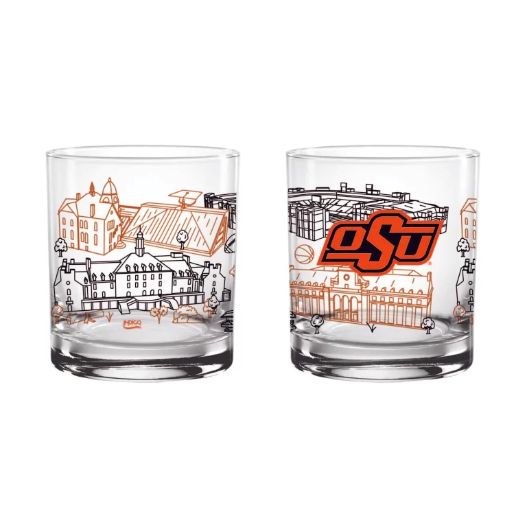 Set of 2 Oklahoma State Cowboys Campus Line Art 14oz Rocks Glasses