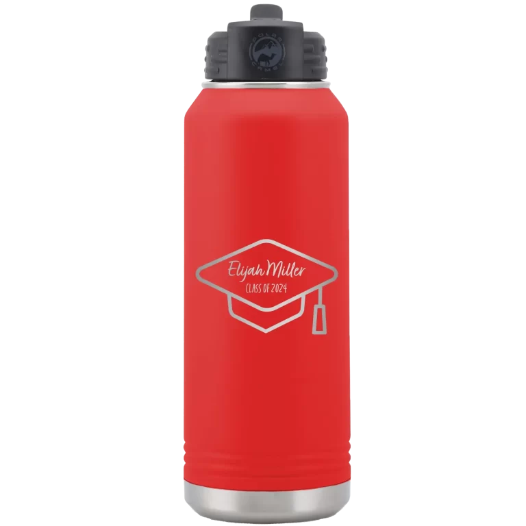 Personalized 2 lines Grad Name and Class 32 oz Water Bottle – Red