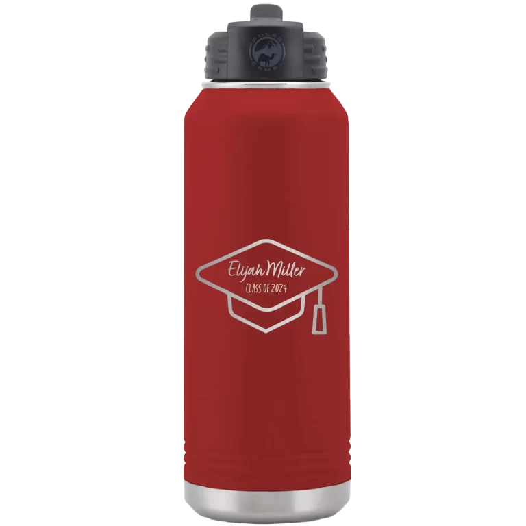 Personalized 2 lines Grad Name and Class 32 oz Water Bottle – Maroon