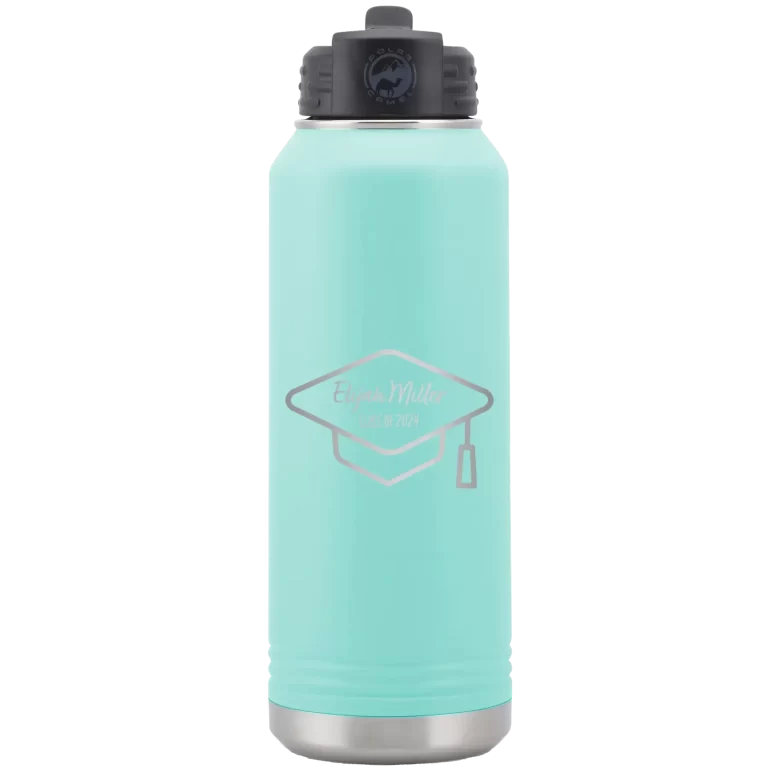 Personalized 2 lines Grad Name and Class 32 oz Water Bottle – Teal