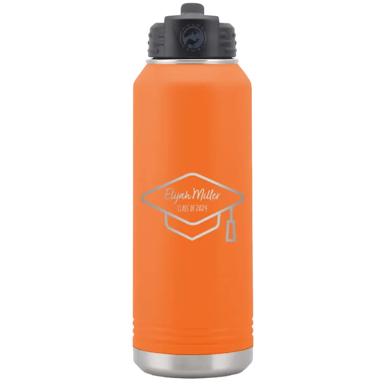 Personalized 2 lines Grad Name and Class 32 oz Water Bottle – Orange