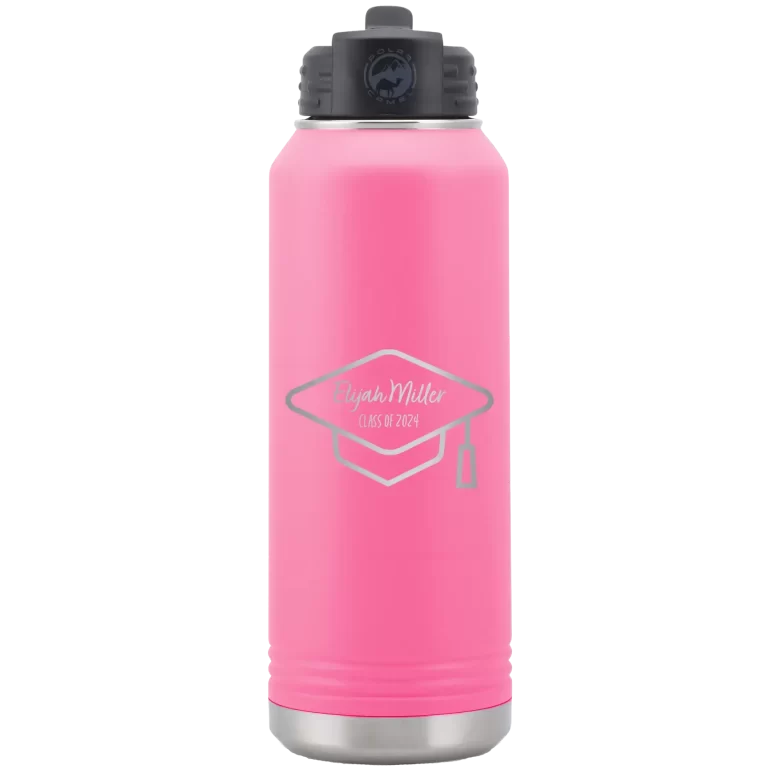 Personalized 2 lines Grad Name and Class 32 oz Water Bottle – Pink