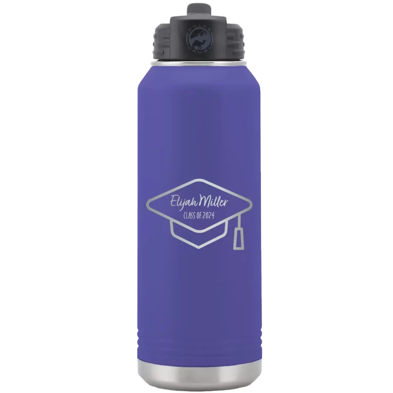 Personalized 2 lines Grad Name and Class 32 oz Water Bottle – Purple