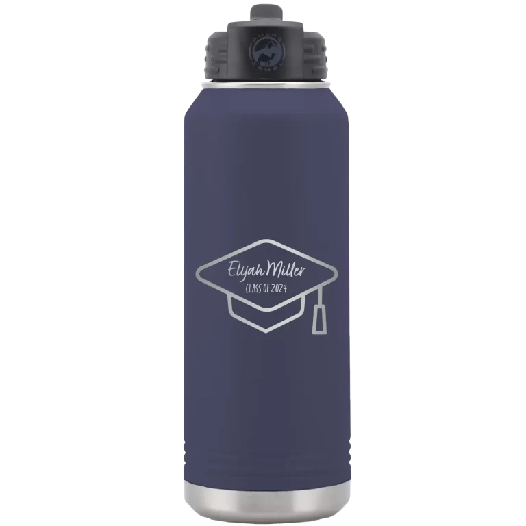 Personalized 2 lines Grad Name and Class 32 oz Water Bottle – Navy