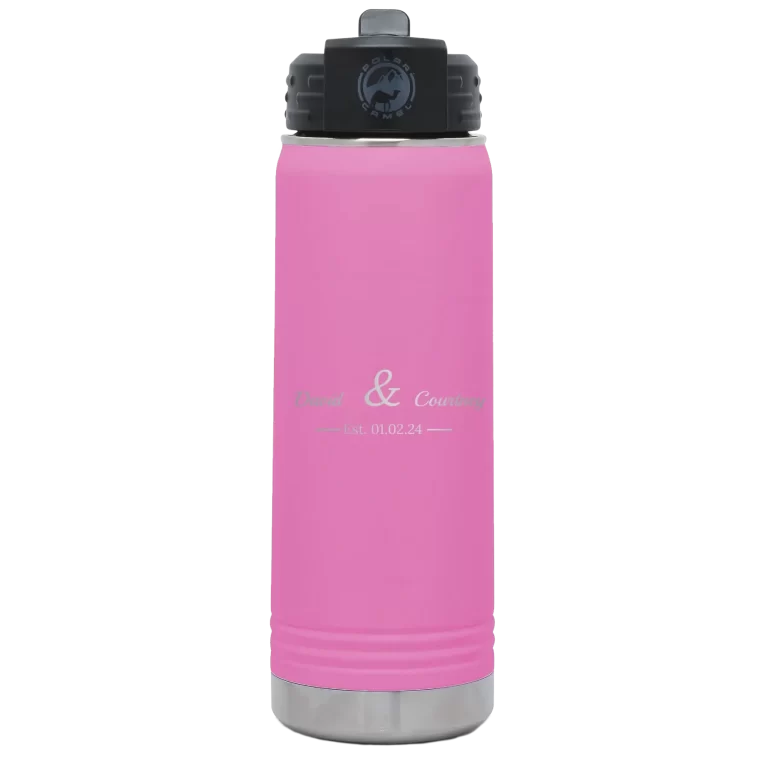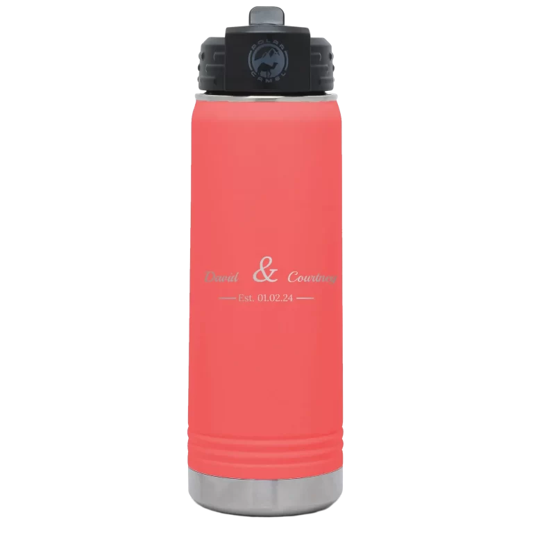 Personalized 2 Lines Name Anniversary 20 oz Water Bottle – Coral