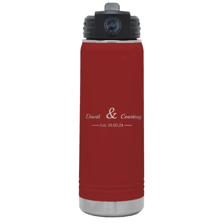 Personalized 2 Lines Name Anniversary 20 oz Water Bottle – Maroon