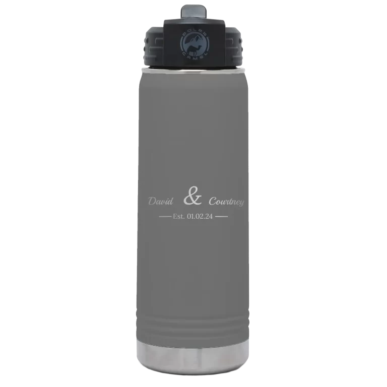 Personalized 2 Lines Name Anniversary 20 oz Water Bottle – Dark Gray