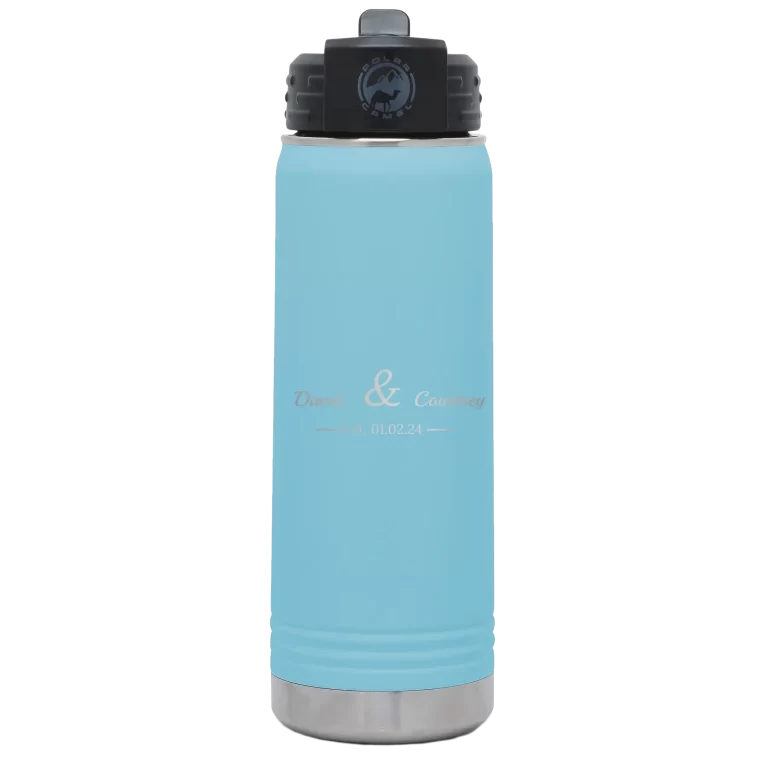 Personalized 2 Lines Name Anniversary 20 oz Water Bottle – Light Blue