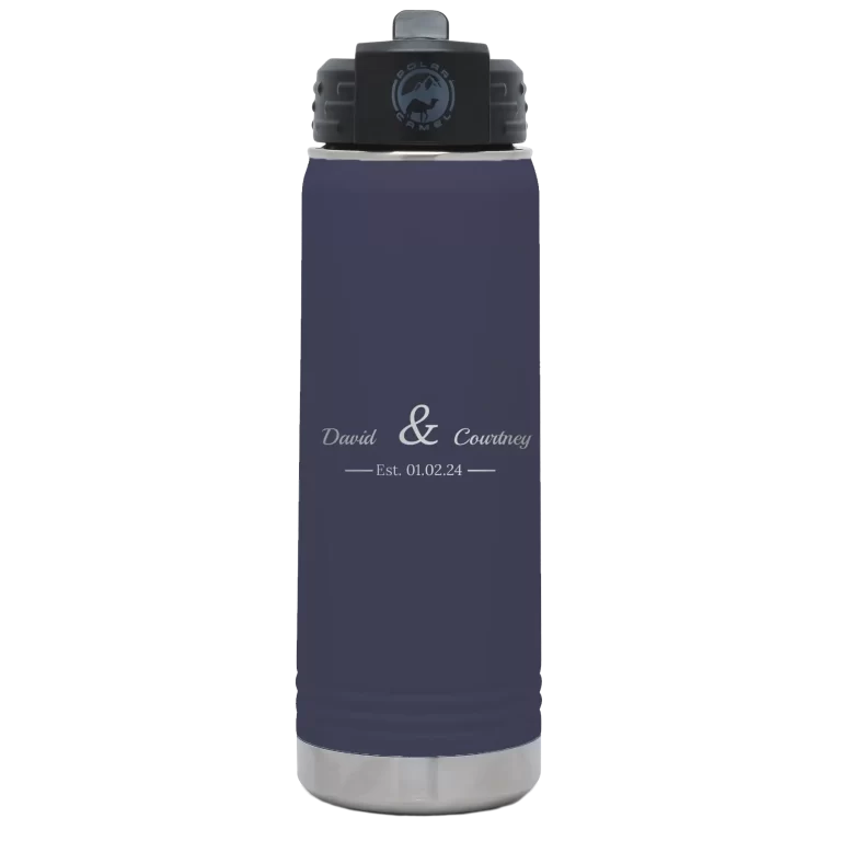 Personalized 2 Lines Name Anniversary 20 oz Water Bottle – Navy