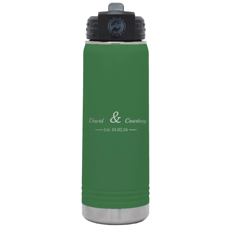 Personalized 2 Lines Name Anniversary 20 oz Water Bottle – Green