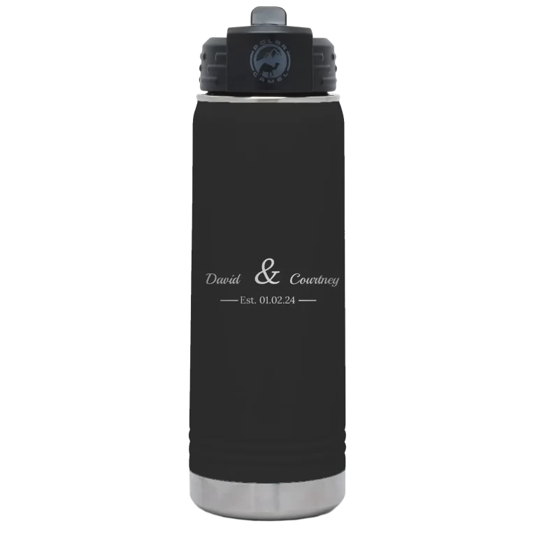 Personalized 2 Lines Name Anniversary 20 oz Water Bottle – Black