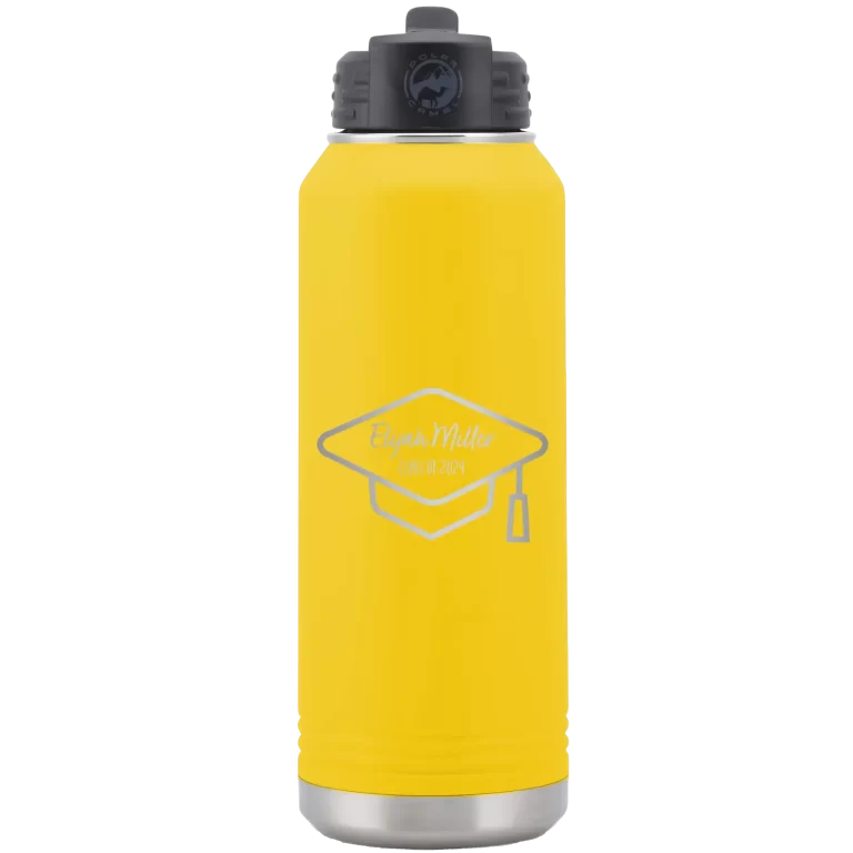 Personalized 2 lines Grad Name and Class 32 oz Water Bottle – Yellow