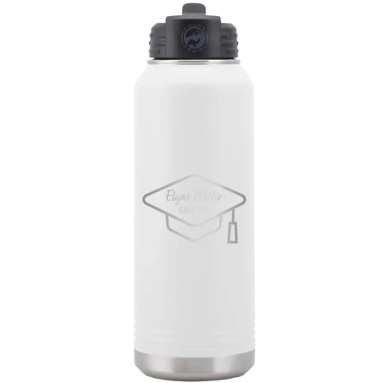 Personalized 2 lines Grad Name and Class 32 oz Water Bottle – White