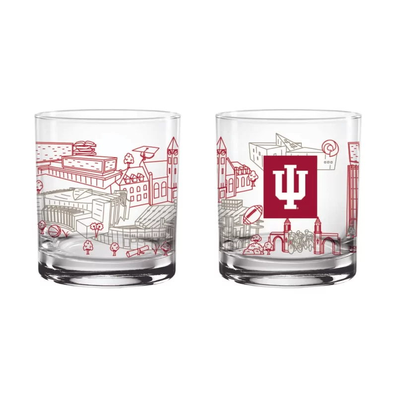 Set of 2 Indiana Hoosiers Campus Line Art 14oz Rocks Glasses