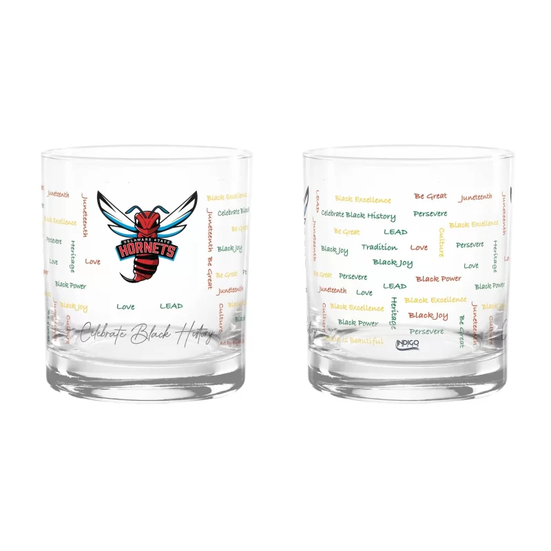 14 oz rocks glass 2 pack set with school logo, Dishwasher Safe. Each glass is handcrafted with a sand-blasted, etch logo. Officially licensed.