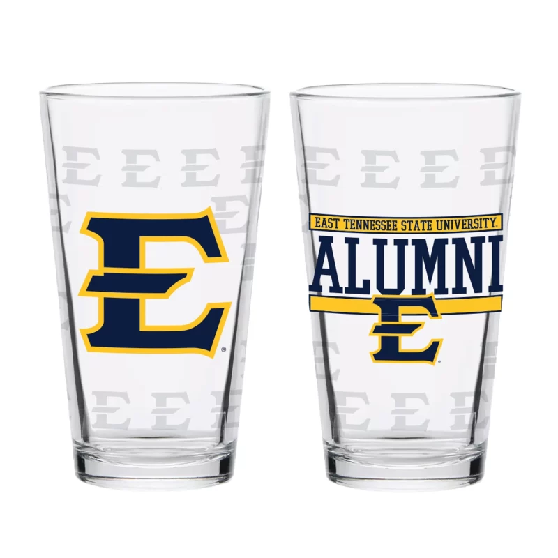 16oz pint glass 2 pack set with school logo, Dishwasher Safe. Each glass is handcrafted with a sand-blasted, etch logo. Officially licensed.