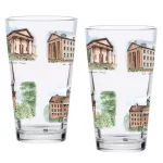 Freehand, watercolor paintings of North Carolina University’s iconic campus buildings by Laura Wilcox. Experience the beauty of North Carolina with every sip! This 2-pack pint set, features original hand-painted designs by Laura Wilcox, showcasing iconic landmarks such as Old Well, Playmakers Theatre, Old East, Morehead-Patterson Bell Tower, and South Building.