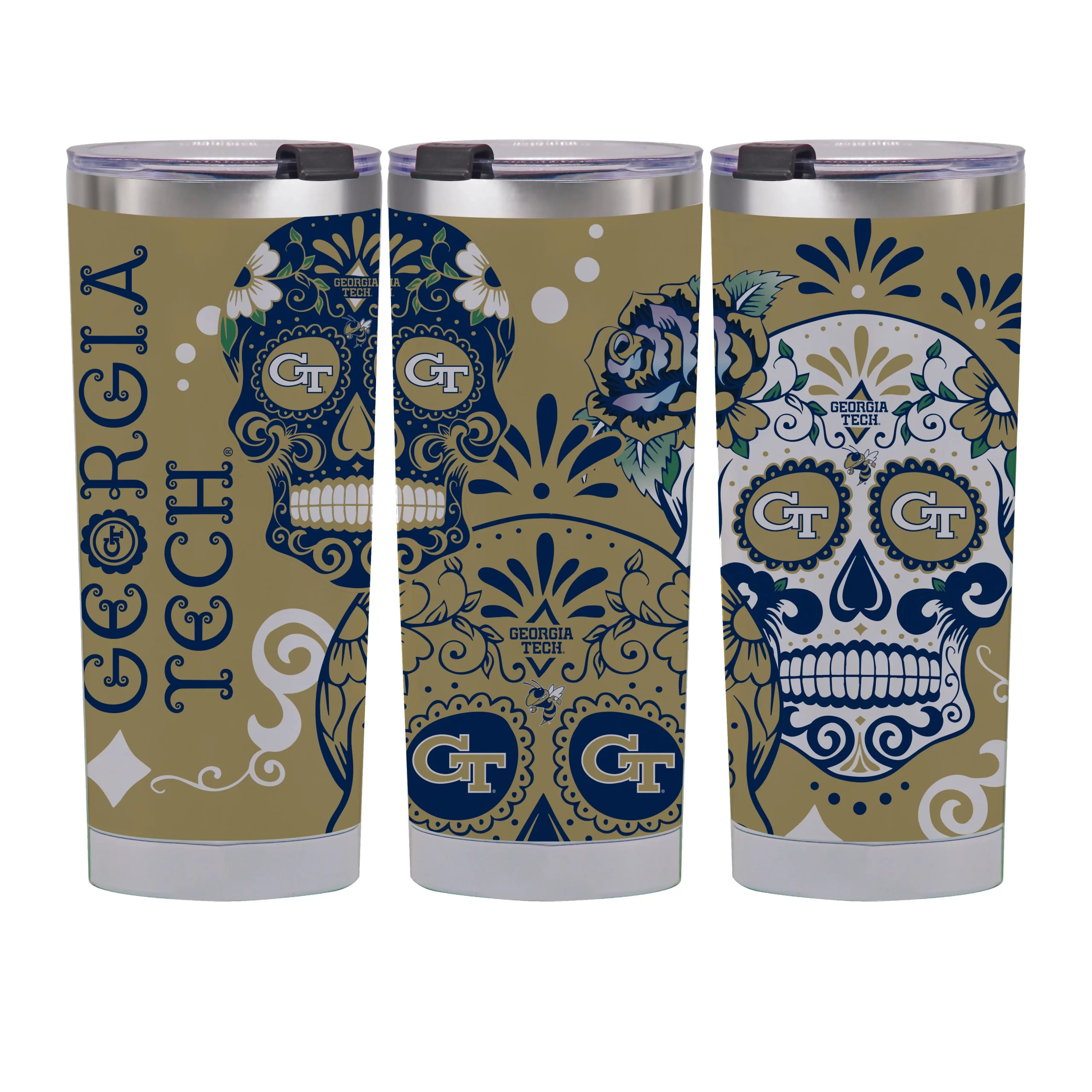 Cheer on the Georgia Tech Yellow Jackets with this beautiful 18oz tumblers featuring Dia de los Muertos artwork. How ’bout dem Jackets!