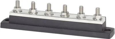 Busbar; MaxiBus; 6 Stud Terminal; 300 Volts AC/ 48 Volts DC; 250 Amps; Plastic Base With Tin-Plated Copper Bus; Insert