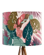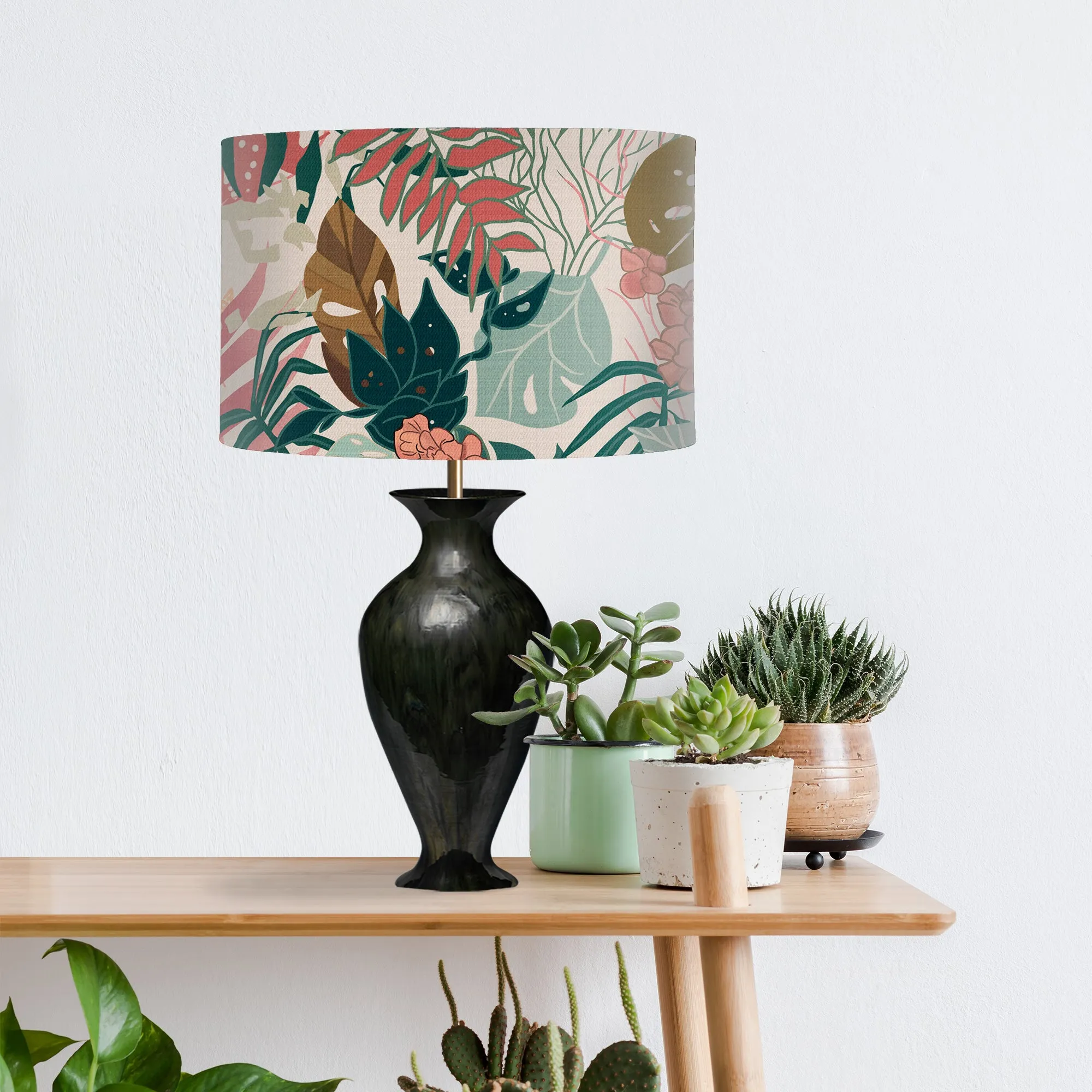 Brimming with modern abstract tropical chic, this bold and colourful lampshade will instantly add a stylish feel to any room. Part of our Bright Tropics Collection and featuring tones of green, pink and a hint of warm orange.