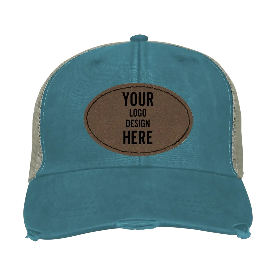 Adam’s Ollie Distressed Trucker Hat – Teal with Leatherette Patch – Oval Stitch