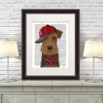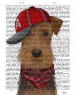 Airedale and Baseball Cap, Book Print, Dog Art Print, Wall Art