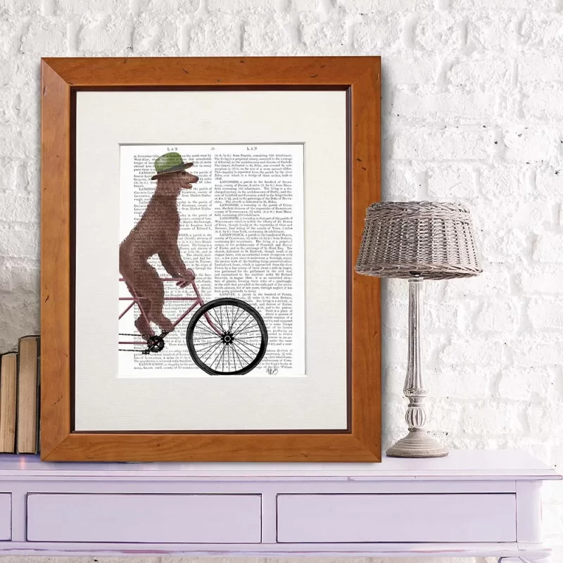 Poodle on Bicycle, Brown, Book Print, Dog Art Print, Wall Art